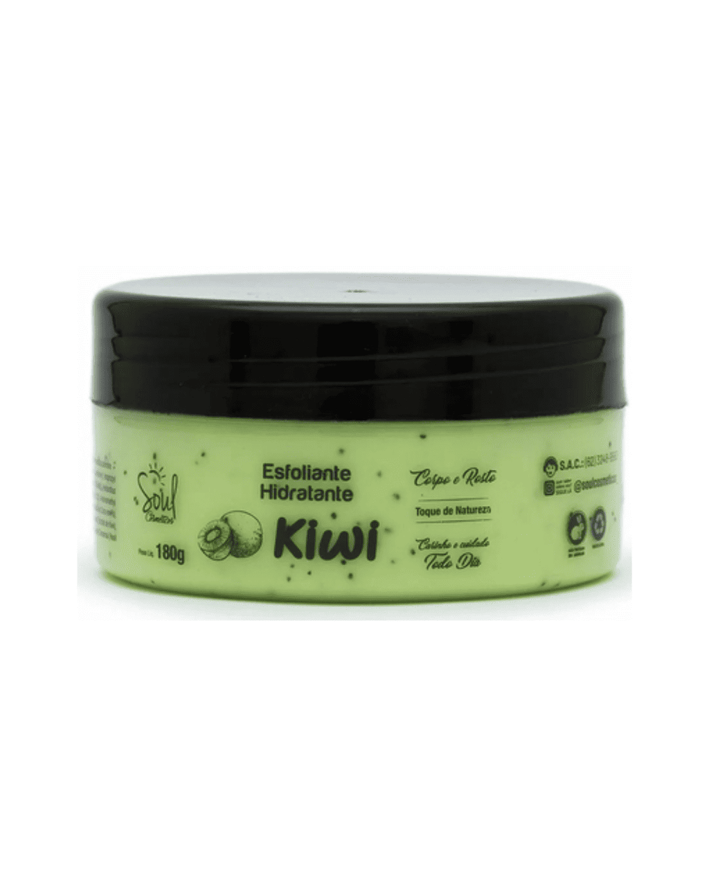 Esfoliante corporal e facial com extrato e fragrância de kiwi, rico em vitaminas e antioxidantes. Sua fórmula promove esfoliação suave que remove células mortas e impurezas, deixando a pele macia, renovada e com textura mais uniforme. Além de limpar, hidrata e nutre a pele, proporcionando toque sedoso e aparência radiante. Indicado para uso 1–2 vezes por semana, ideal para quem busca uma pele mais luminosa e saudável.