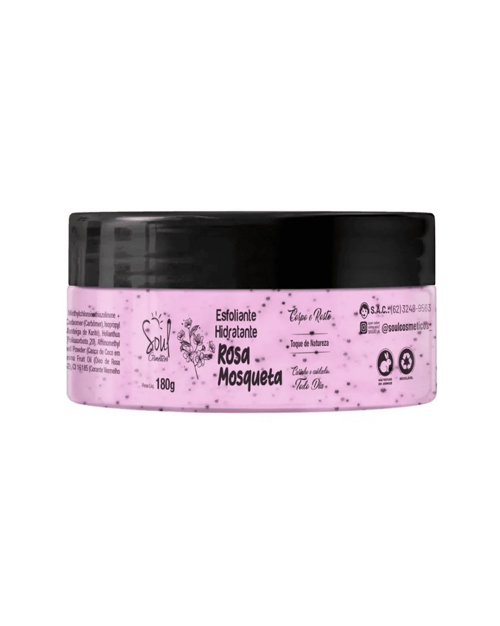 Esfoliante corporal e facial com óleo de rosa-mosqueta e grânulos suaves que removem células mortas e impurezas, promovendo renovação celular. Sua fórmula hidrata e nutre a pele, deixando-a macia, com textura mais uniforme e aspecto luminoso. Ideal para uso 2–3 vezes por semana, ajuda a preparar a pele para absorver melhor hidratantes e a manter a sensação de frescor e bem-estar.