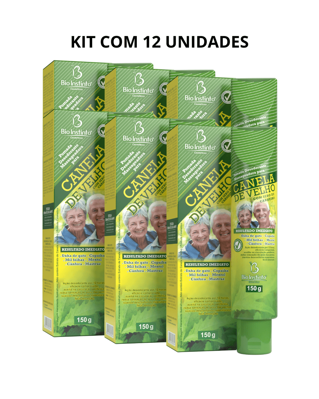 KIT COM 12 UNIDADES DA POMADA MASSAGEADORA CANELA DE VELHO DE 150G - BIO INSTINTO