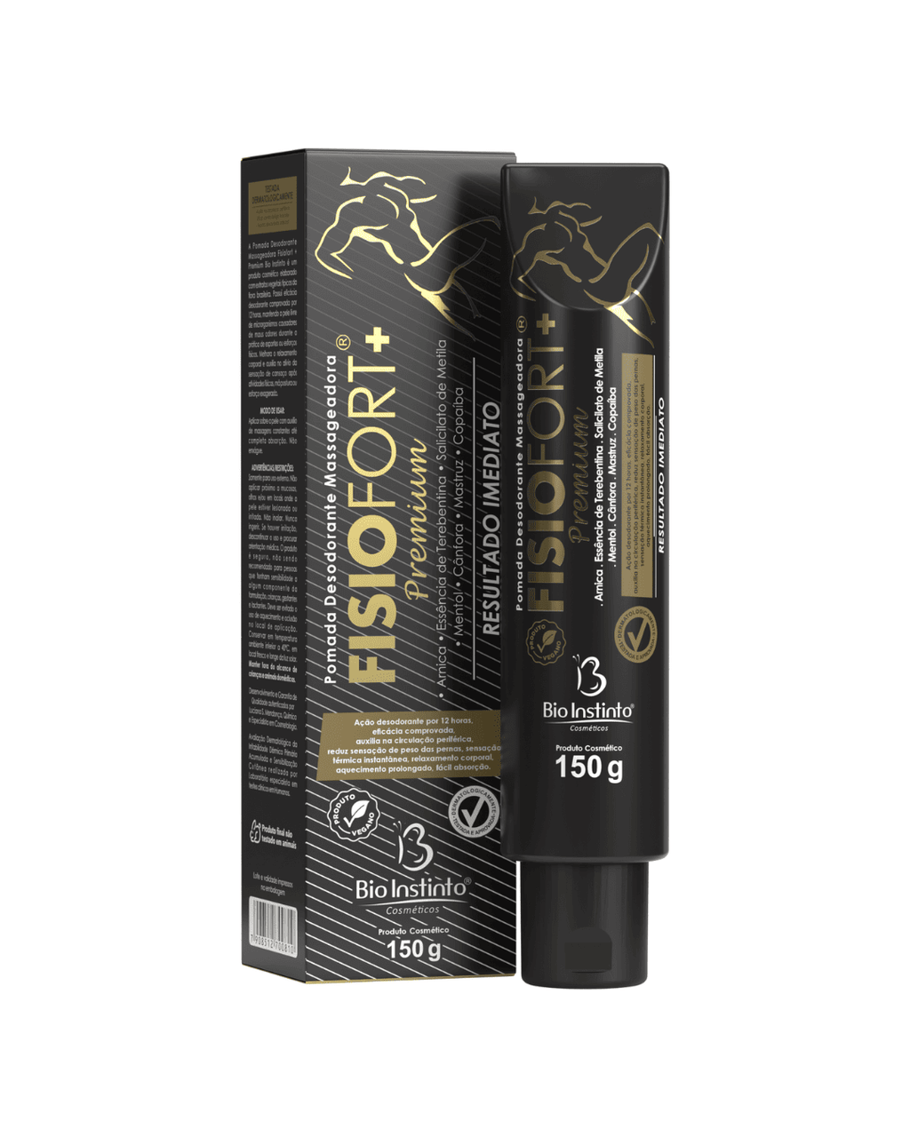 A Pomada Massageadora Fisiofort + Premium Bio Instinto possui fórmula nova, 0% Parabenos e 0% Petrolatum. Indicada para ação desodorante, auxilia no alivio dos sintomas de rigidez ou fadiga muscular. É um produto cosmético elaborado com extratos vegetais típicos da flora brasileira. Sua função é promover relaxamento corporal e auxiliar no alívio da sensação de cansaço corporal após exercícios físicos, má postura ou esforço exagerado.