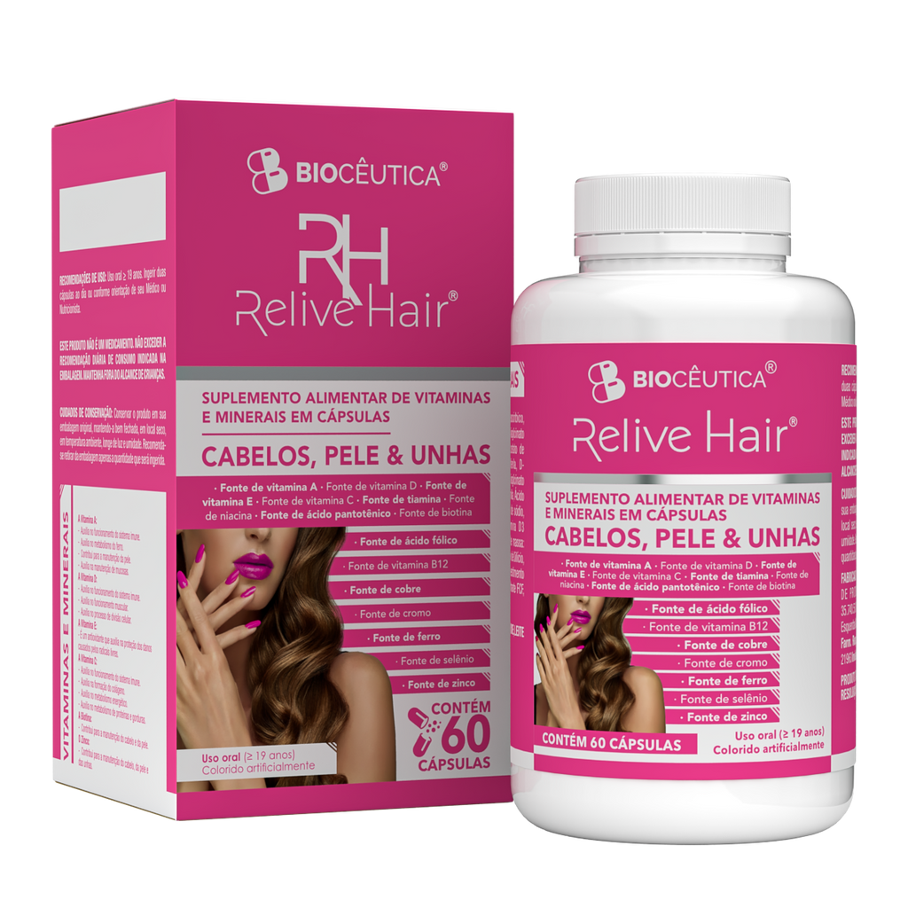 O Relive Hair Premium Suplemento Alimentar 60 cápsulas da Bioceutica é formulado com nutrientes selecionados que atuam no suporte nutricional para cabelos, pele e unhas. Sua composição auxilia no fornecimento de vitaminas e minerais importantes para a manutenção da saúde capilar, contribuindo para o fortalecimento dos fios e para o cuidado diário com a aparência, quando associado a uma alimentação equilibrada.